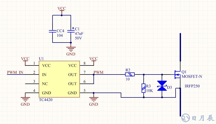 比較好的方法是使用專用的MOSFET驅動芯片如TC4420來驅動MOS管,這類的芯片一般有很大的瞬間輸出電流,而且還兼容TTL電平輸入