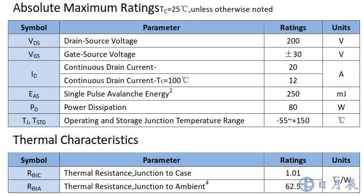 電壓:200V,電流:20A,Vgs:30V,Rds:0.17Ω |